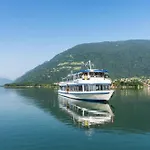 During the stay at the beachfront Ferienhaus Mit Sauna Direkt Am Ossiacher See Und An Der Gerlitzen Alpe Bodensdorf, guests can indulge in a sauna or visit the medieval church "Ossiach Abbey", located 2.5 km away. The holiday home features opportunities for diving, snow skiing, and hiking in the area, 10 minutes by car from Golfanlage Velden Koestenberg.